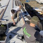 When we arrived the mobile home had been gutted and on its way to new plywood on the floors, new drywall, and the plumbing and electrical were being worked on. This project was much like our house in SC because every time they turned around another issue came about. For example, we had just finished doing the drywall in the kitchen and after a storm, two leaks in the kitchen ceiling arose, so this led to conversation about the roof. Before long, Tim and Josh had a plan for installing a new roof on the entire house. During our time there we were able to help with drywall, electrical, insulation, roofing, exterior skirting, cabinet installation, front door installation, new OSB flooring, and more.
